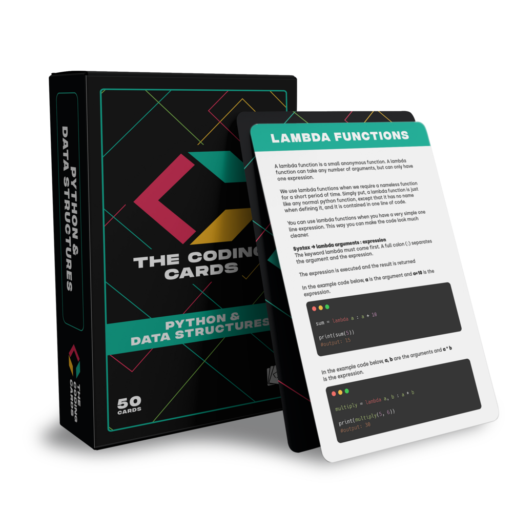 These cards are suitable for new or experienced Python coders to reinforce the concepts, revisit tricky topics, and terminology to become a successful developer.